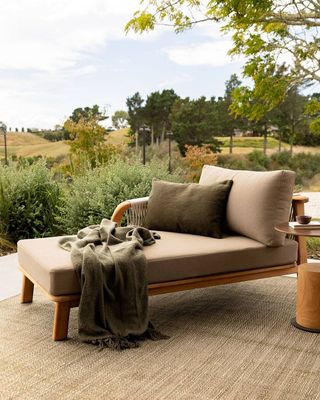 Add natural colour to your outdoor spaces with the contemporary aesthetic and solid almond tone of the Clipper cushion.